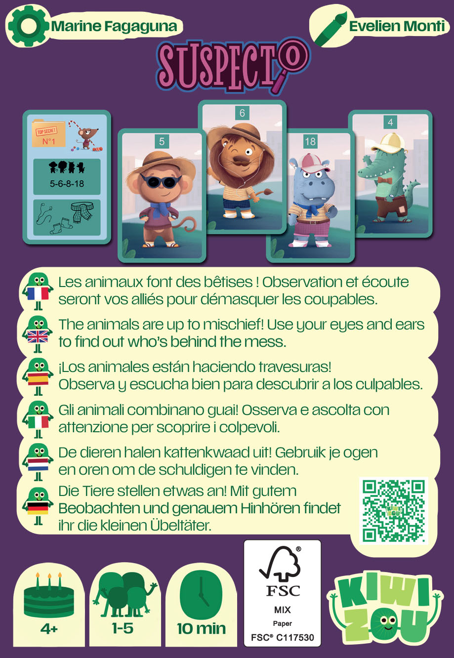 Qui a mangé tous les bonbons ? Qui n’a pas fini sa soupe ? Autant d’énigmes à résoudre et de coupables à confondre. Coopérez, usez d’observation et d’écoute pour retrouver les auteurs de tous ces méfaits.